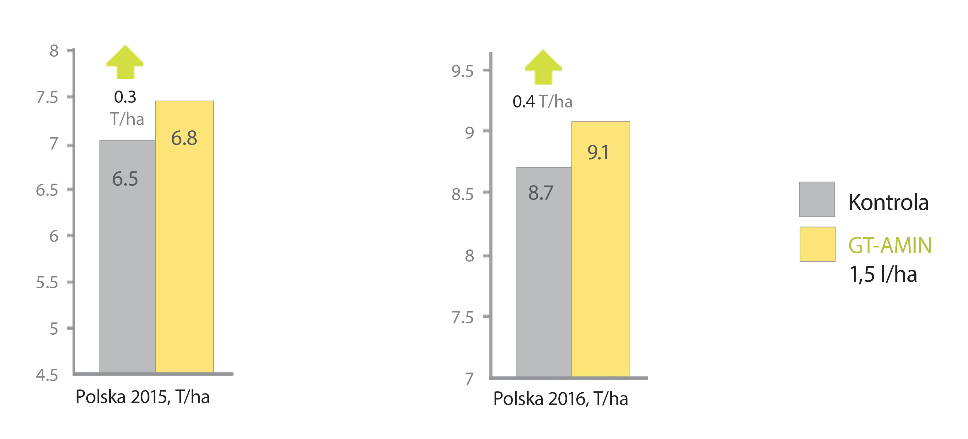 na wielkość plonu kukurydzy. 1 zabieg w fazie BBCH