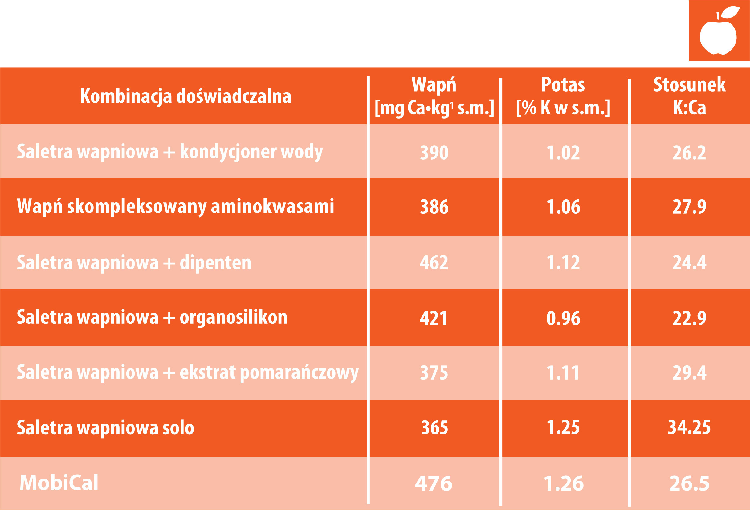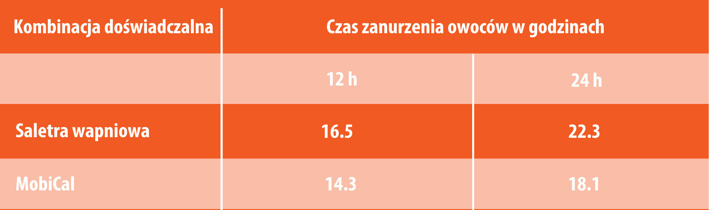 Komórki są lepiej uwodnione, ściany membranowe są grube i solidne, co prowadzi do znacznie dłuższego przechowywania życia owocu. Przechowywane owoce zachowują jędrność. Problemy z gorzką plamistością można rozwiązać stosując MobiCal.