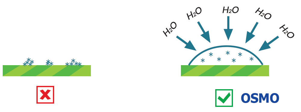 OSMO zmienia właściwości fizyczne kropelek sprzyjając doskonałej retencji: