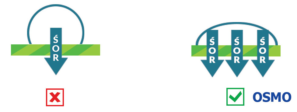 OSMO dzięki swojej wysokiej właściwości zakwaszania obniża pH do optymalnego poziomu.