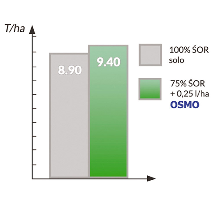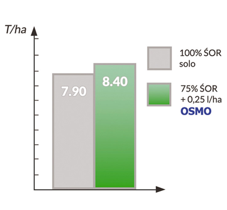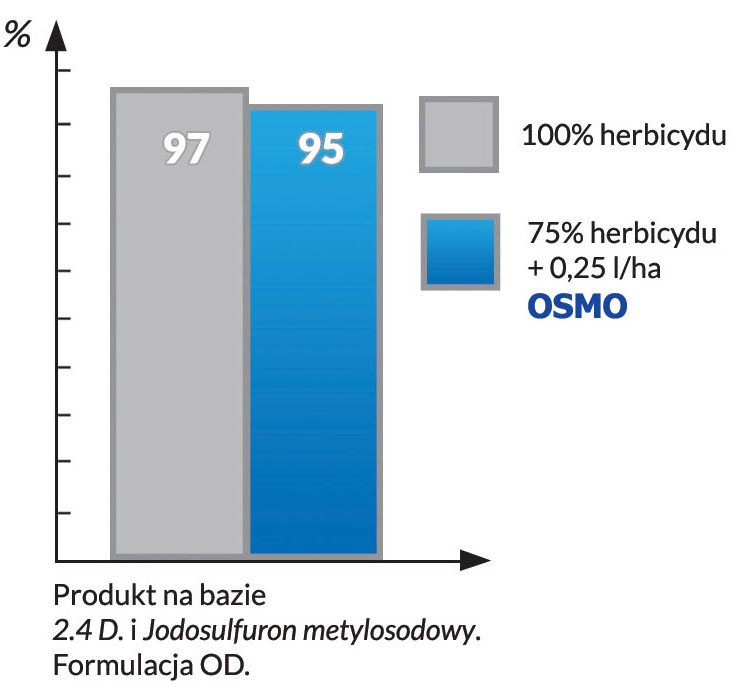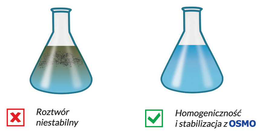 Mieszanina kilku produktów może prowadzić do słabej homogeniczności roztworu, czyli nieregularnego opryskiwania upraw. OSMO dzięki doskonałej równowadze HLB (równowaga hydrofilowo-lipofilowa) poprawia kompatybilność mieszaniny produktów. Zwiększa również rozpuszczalność produktu w postaci stałej (formuła WPS, WP, WG).
