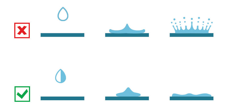 - Kropelki w momencie uderzenia, nie rozpadają się na kilka mniejszych.