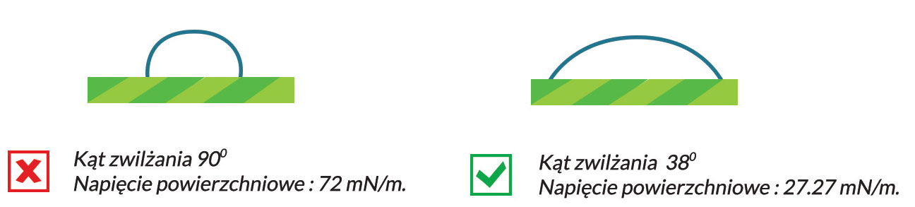 OSMO zmniejsza kąt zwilżania kropelek, tak aby uzyskać idealne pokrycie.